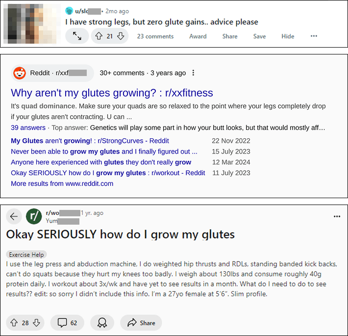 (Or a lack of protein: if you're seeing results elsewhere, you're getting enough to build glutes.)